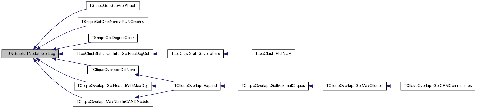 Referenced by TSnap::GenGeoPrefAttach(), TSnap::GetCmnNbrs< PUNGraph >(), TSnap::GetDegreeCentr(), TLocClustStat::TCutInfo::GetFracDegOut(), TCliqueOverlap::GetNbrs(), TCliqueOverlap::GetNodeIdWithMaxDeg(), and TCliqueOverlap::MaxNbrsInCANDNodeId().