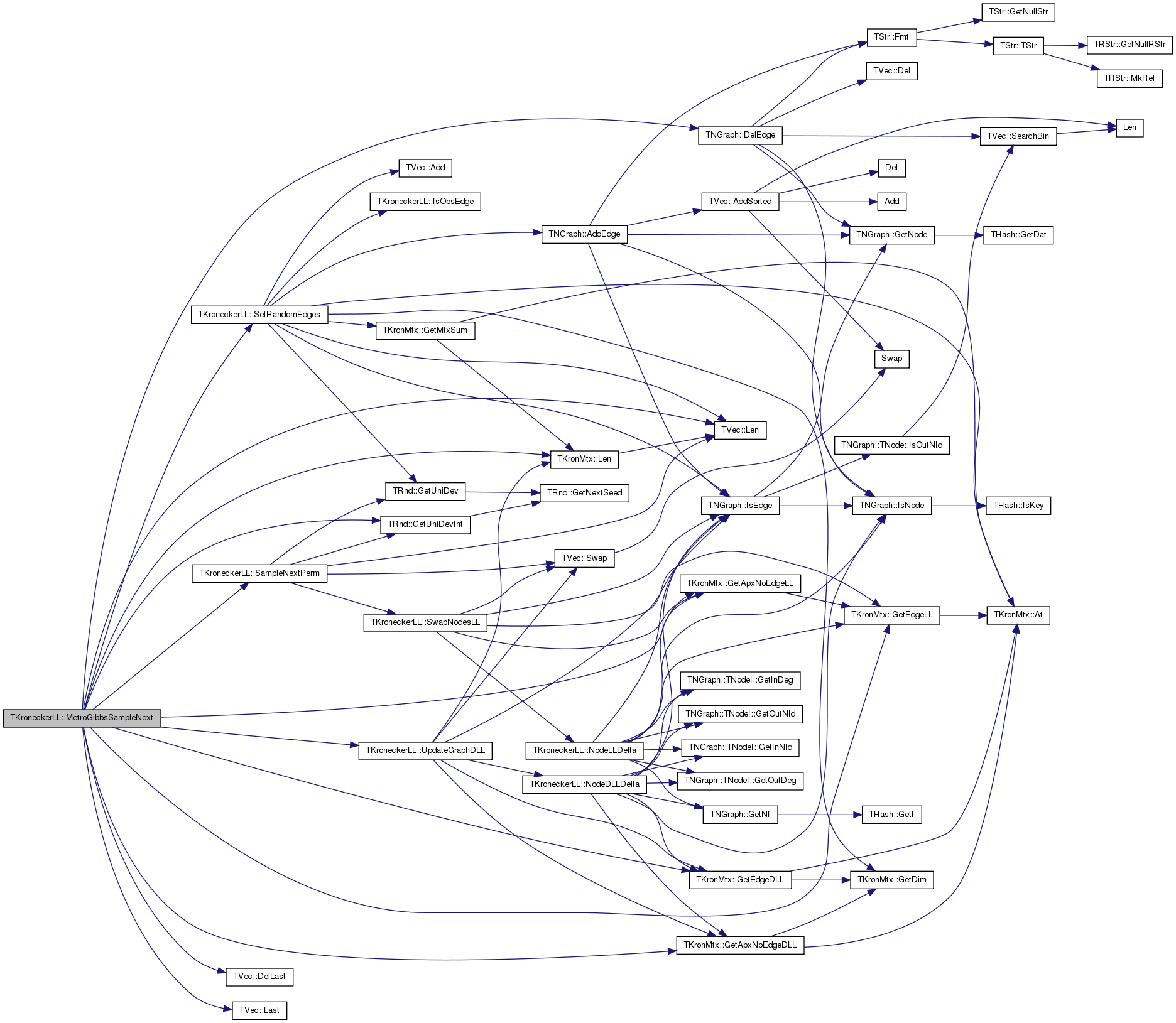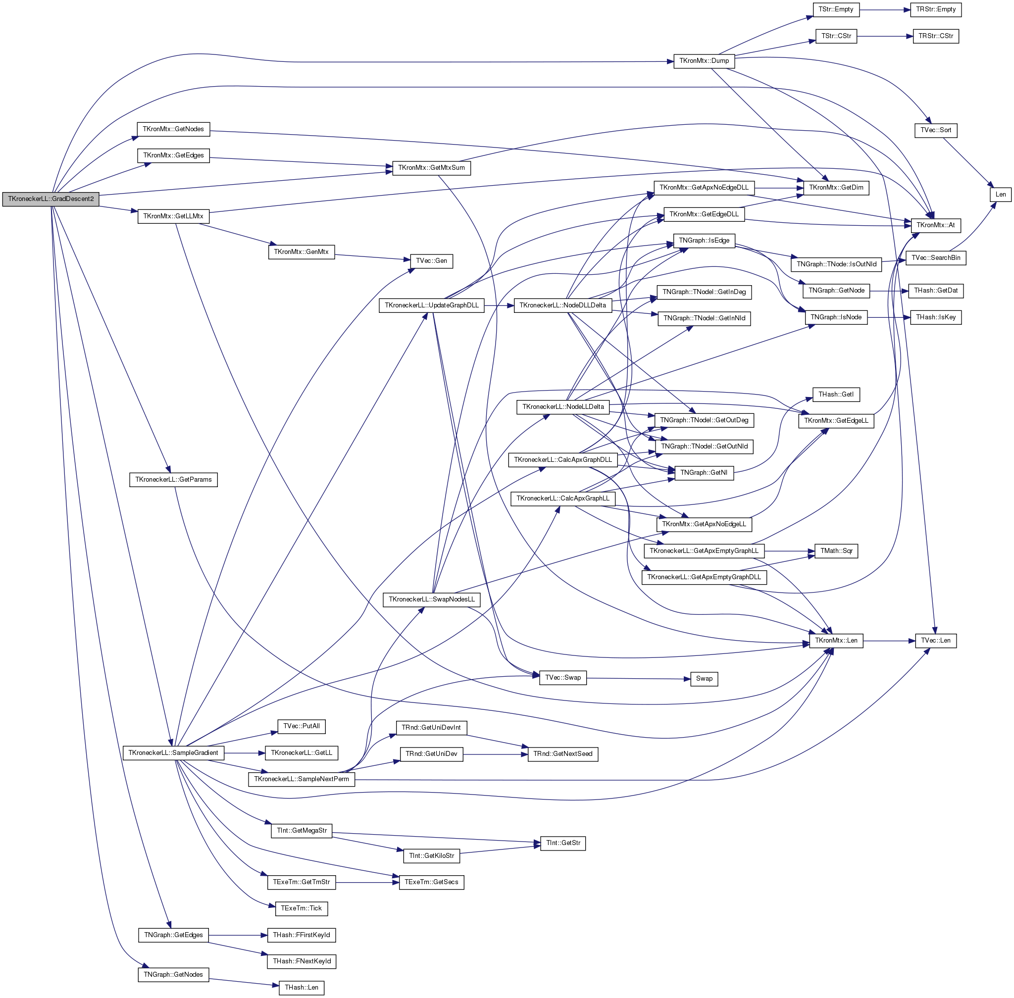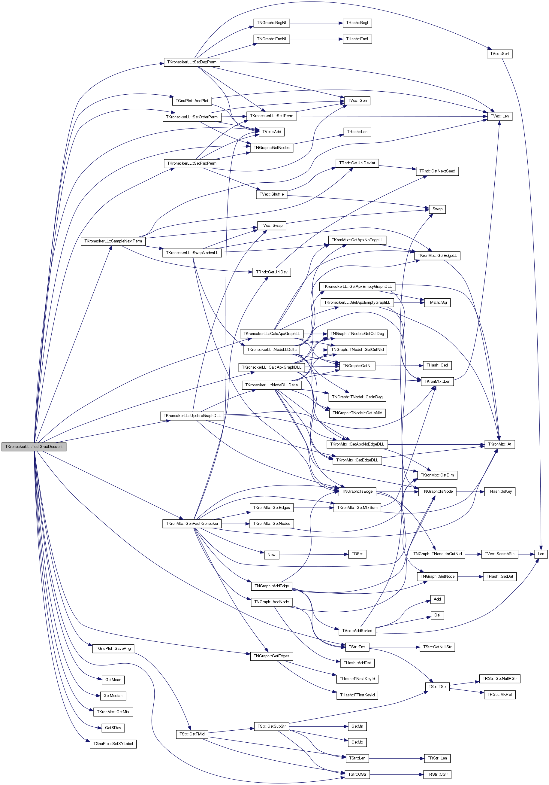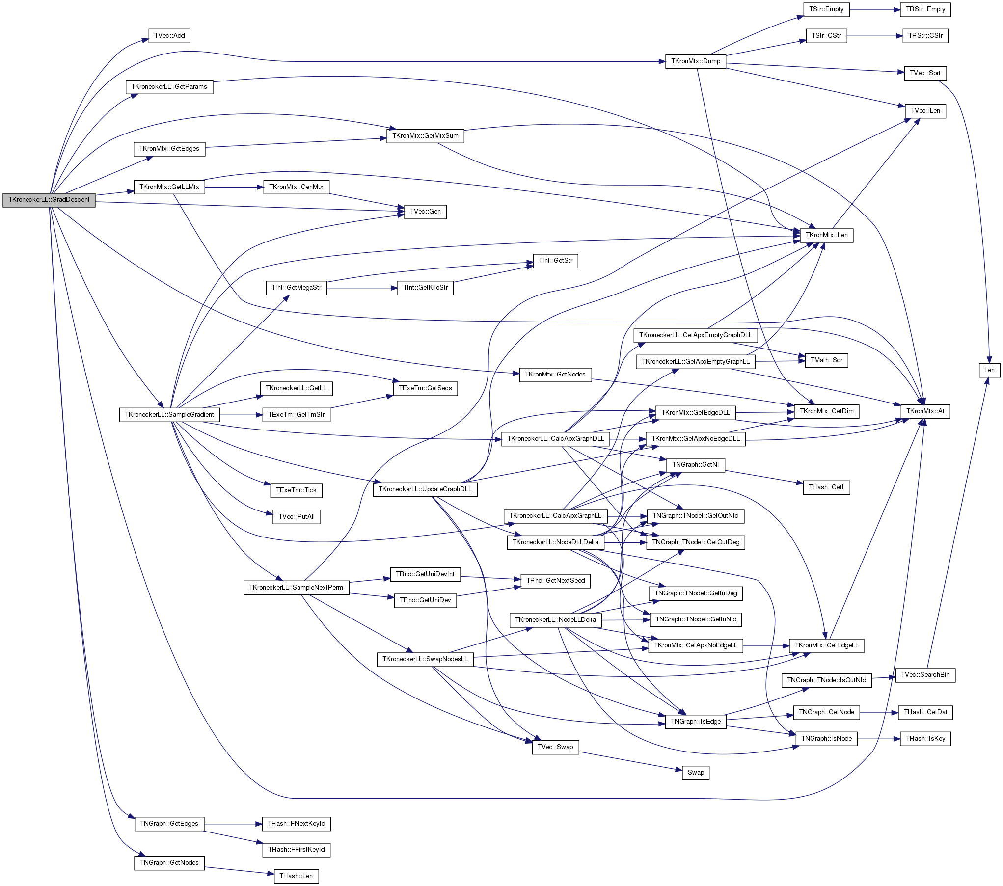 References TKronMtx::GetApxNoEdgeDLL(), TKronMtx::GetEdgeDLL(), GradV, Graph, TNGraph::IsEdge(), KronIters, TKronMtx::Len(), LLMtx, NodeDLLDelta(), NodePerm, and TVec< TVal >::Swap().