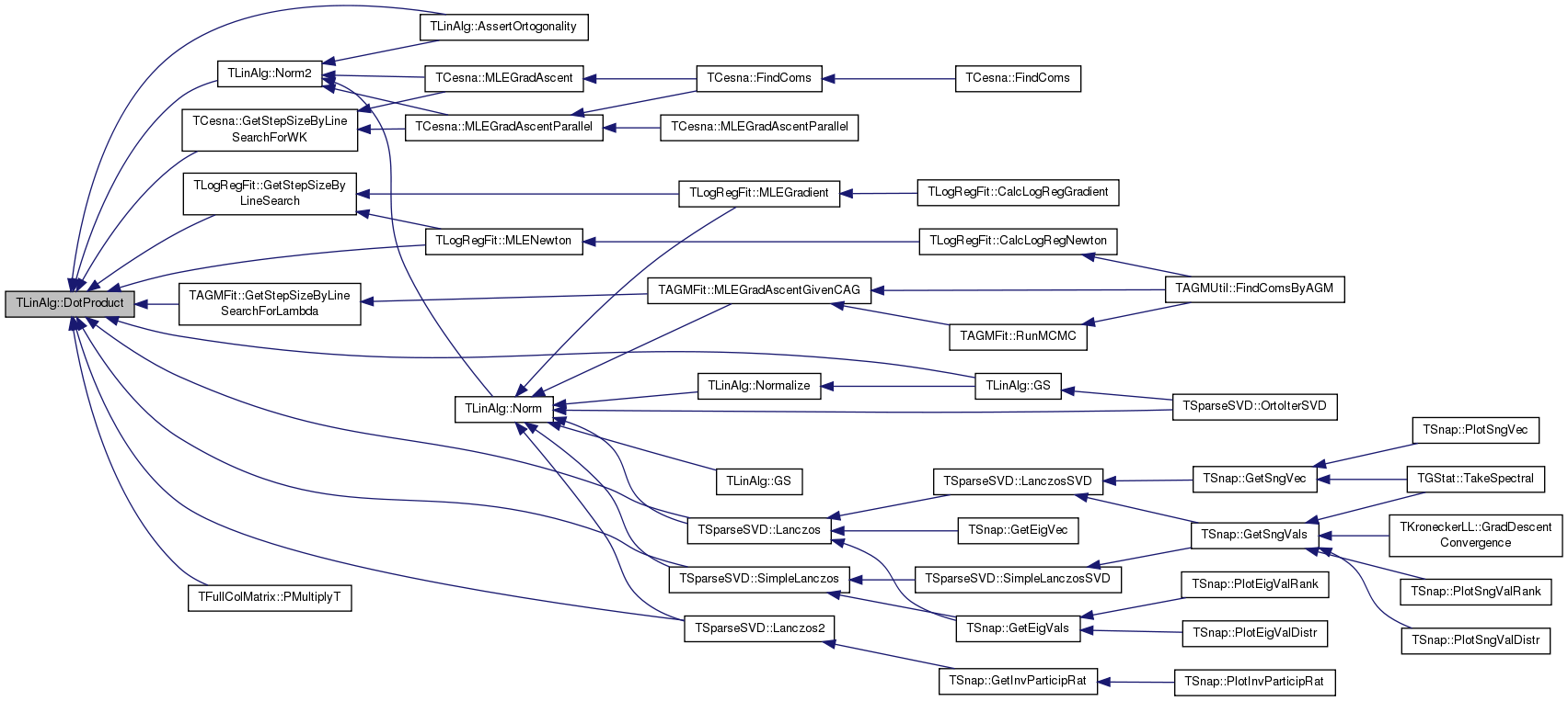 Referenced by AssertOrtogonality(), TLogRegFit::GetStepSizeByLineSearch(), TAGMFit::GetStepSizeByLineSearchForLambda(), TCesna::GetStepSizeByLineSearchForWK(), GS(), TSparseSVD::Lanczos(), TSparseSVD::Lanczos2(), TLogRegFit::MLENewton(), Norm2(), TFullColMatrix::PMultiplyT(), and TSparseSVD::SimpleLanczos().