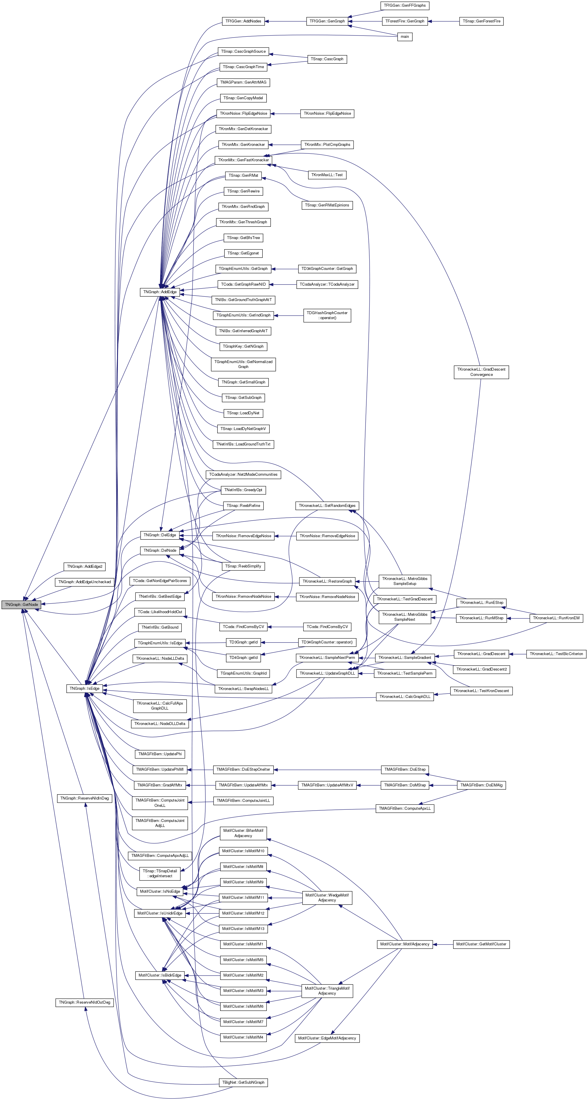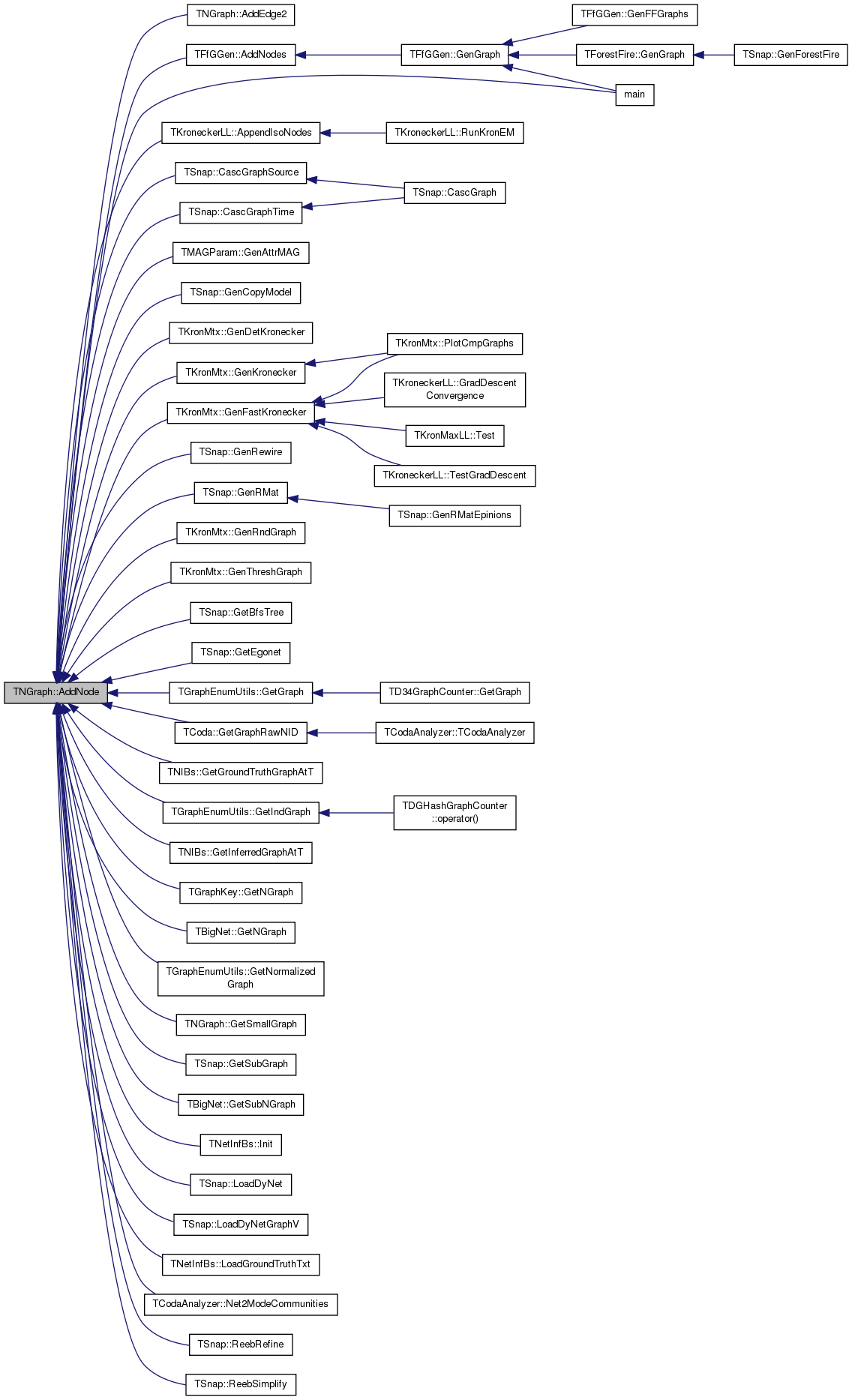 Referenced by TSnap::CascGraphSource(), TSnap::CascGraphTime(), TMAGParam< TNodeAttr >::GenAttrMAG(), TSnap::GenCopyModel(), TKronMtx::GenDetKronecker(), TKronMtx::GenFastKronecker(), TKronMtx::GenKronecker(), TSnap::GenRewire(), TSnap::GenRMat(), TKronMtx::GenRndGraph(), TKronMtx::GenThreshGraph(), TSnap::GetBfsTree(), TSnap::GetEgonet(), TD34GraphCounter::GetGraph(), TCoda::GetGraphRawNID(), TNIBs::GetGroundTruthGraphAtT(), TNIBs::GetInferredGraphAtT(), TGraphEnumUtils::GetIsoGraphs(), TGraphKey::GetNGraph(), TBigNet< TNodeData, IsDir >::GetNGraph(), GetSmallGraph(), TSnap::GetSubGraph(), TBigNet< TNodeData, IsDir >::GetSubNGraph(), TNetInfBs::Init(), TSnap::LoadDyNet(), TSnap::LoadDyNetGraphV(), TNetInfBs::LoadGroundTruthTxt(), main(), TCodaAnalyzer::Net2ModeCommunities(), TDGHashGraphCounter::operator()(), TSnap::ReebRefine(), TSnap::ReebSimplify(), TCoda::TCoda(), and TCodaAnalyzer::TCodaAnalyzer().