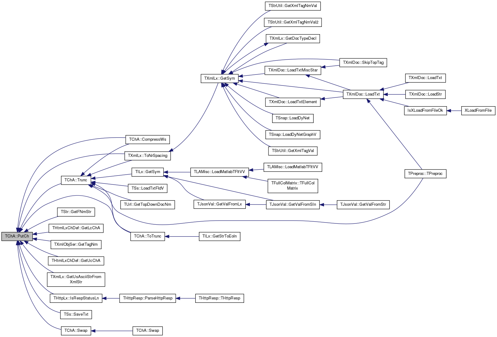 Referenced by AddChTo(), ChangeCh(), CompressWs(), CountCh(), TUrl::DecodeUrlStr(), TUrlLx::Eof(), THtmlLx::GetAsciiStr(), TXmlLx::GetCDSect(), TUStr::GetChTypeStr(), TStrUtil::GetCleanStr(), TStrUtil::GetCleanWrdStr(), THtmlLxChDef::GetCSZFromWin1250(), THtmlLxChDef::GetCSZFromYuascii(), TStrUtil::GetDomNm(), THtmlLx::GetEscapedStr(), TStr::GetFNmStr(), THtmlLxChDef::GetIsoCeFromYuascii(), THtmlLxChDef::GetLcChA(), TSsParserMP::GetLnStr(), TSsParser::GetLnStr(), TStrUtil::GetShorStr(), GetSubStr(), TXmlLx::GetSym(), TXmlParser::GetSym(), TXmlObjSer::GetTagNm(), TTm::GetTmFromIdStr(), THtmlLxChDef::GetUcChA(), TUrl::GetUrlSearchStr(), TXmlLx::GetUsAsciiStrFromXmlStr(), TStrUtil::GetWebsiteNm(), THtmlLxChDef::GetWin1250FromYuascii(), TXmlDoc::GetXmlStr(), TXmlLx::GetXmlStrFromPlainStr(), IsPrefix(), THttpLx::IsRespStatusLn(), IsSuffix(), TXmlLx::IsTagNm(), operator+=(), TUniChDb::TSubcatHelper::ProcessComment(), TSOut::PutStr(), TStrUtil::RemoveHtmlTags(), TSs::SaveTxt(), SaveTxt(), SearchCh(), SearchChBack(), TStrUtil::SplitSentences(), TStrUtil::StripEnd(), TMd5Sig::TMd5Sig(), TMIn::TMIn(), TXmlLx::ToNrSpacing(), and ToTrunc().