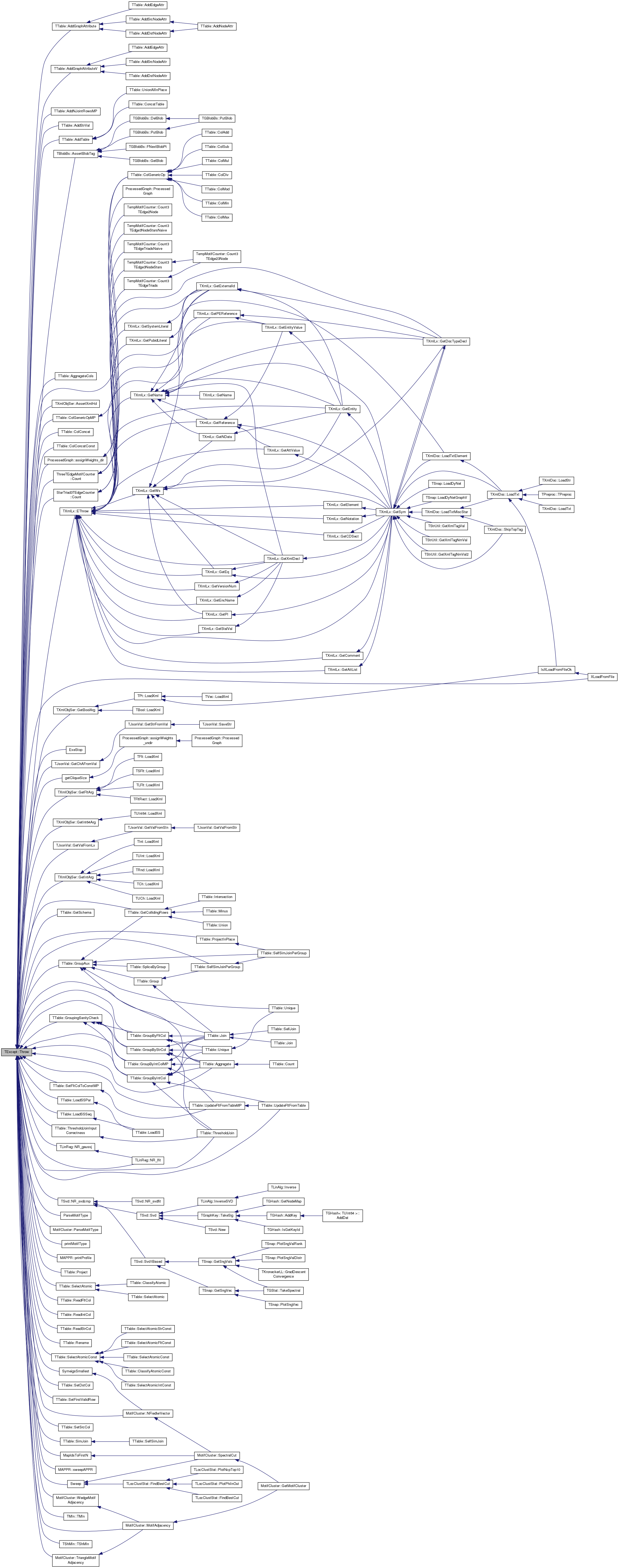 Referenced by TTable::AddGraphAttribute(), TTable::AddGraphAttributeV(), TTable::AddNJointRowsMP(), TTable::AddStrVal(), TTable::AddTable(), TTable::Aggregate(), TTable::AggregateCols(), TBlobBs::AssertBlobTag(), TXmlObjSer::AssertXmlHd(), ProcessedGraph::assignWeights_dir(), TTable::ColConcat(), TTable::ColConcatConst(), TTable::ColGenericOp(), TTable::ColGenericOpMP(), ThreeTEdgeMotifCounter::Count(), StarTriad3TEdgeCounter< EdgeData >::Count(), TXmlLx::EThrow(), ExeStop(), TXmlObjSer::GetBoolArg(), TJsonVal::GetChAFromVal(), getCliqueSize(), TTable::GetCollidingRows(), TXmlObjSer::GetFltArg(), TXmlObjSer::GetInt64Arg(), TXmlObjSer::GetIntArg(), TTable::GetSchema(), TJsonVal::GetValFromLx(), TTable::GroupAux(), TTable::GroupByFltCol(), TTable::GroupByIntCol(), TTable::GroupByIntColMP(), TTable::GroupByStrCol(), TTable::GroupingSanityCheck(), TTable::Join(), TTable::LoadSSPar(), TTable::LoadSSSeq(), MapIdsToFirstN(), MotifCluster::MotifAdjacency(), MotifCluster::NFiedlerVector(), TLinReg::NR_gaussj(), TLinReg::NR_lfit(), TSvd::NR_svdcmp(), ParseMotifType(), MotifCluster::ParseMotifType(), printMotifType(), MAPPR::printProfile(), TTable::Project(), TTable::ProjectInPlace(), TTable::ReadFltCol(), TTable::ReadIntCol(), TTable::ReadStrCol(), TTable::Rename(), TTable::SelectAtomic(), TTable::SelectAtomicConst(), TTable::SelfSimJoinPerGroup(), TTable::SetDstCol(), TTable::SetFirstValidRow(), TTable::SetFltColToConstMP(), TTable::SetSrcCol(), TTable::SimJoin(), Sweep(), MAPPR::sweepAPPR(), SymeigsSmallest(), TTable::ThresholdJoin(), TTable::ThresholdJoinInputCorrectness(), TMIn::TMIn(), MotifCluster::TriangleMotifAdjacency(), TShMIn::TShMIn(), TTable::UpdateFltFromTable(), TTable::UpdateFltFromTableMP(), MotifCluster::WedgeMotifAdjacency(), and XLoadFromFile().