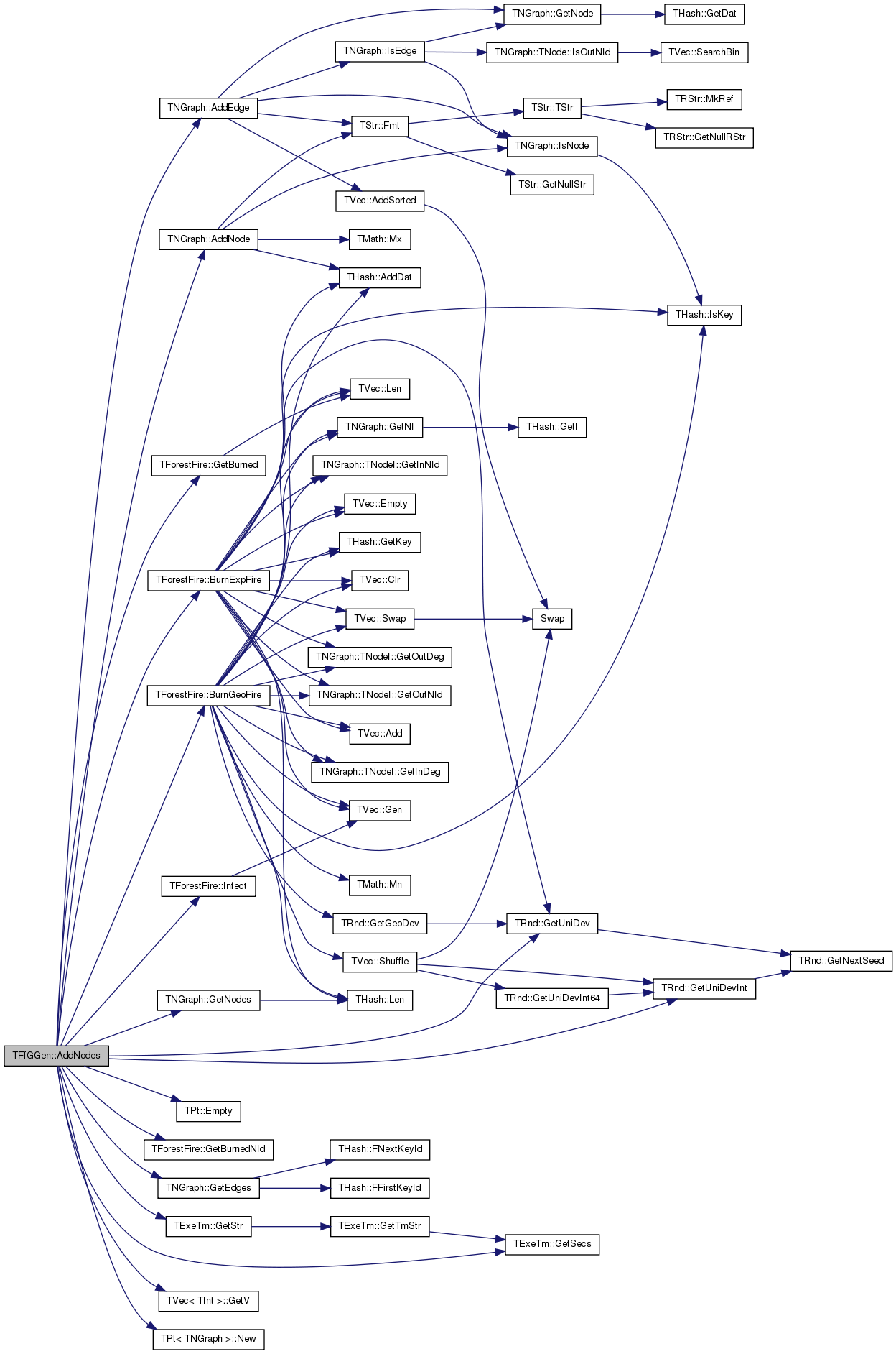 References TNGraph::AddEdge(), TNGraph::AddNode(), BckBurnProb, TForestFire::BurnExpFire(), BurnExpFire, TForestFire::BurnGeoFire(), TPt< TRec >::Empty(), FwdBurnProb, TForestFire::GetBurned(), TForestFire::GetBurnedNId(), TNGraph::GetEdges(), TNGraph::GetNodes(), TExeTm::GetSecs(), TExeTm::GetStr(), TRnd::GetUniDev(), TRnd::GetUniDevInt(), TVec< TInt >::GetV(), Graph, IAssert, TForestFire::Infect(), Kilo, TPt< TNGraph >::New(), OrphanProb, ProbDecay, srFlood, srOk, srTimeLimit, StartNodes, Take2AmbProb, and TimeLimitSec.