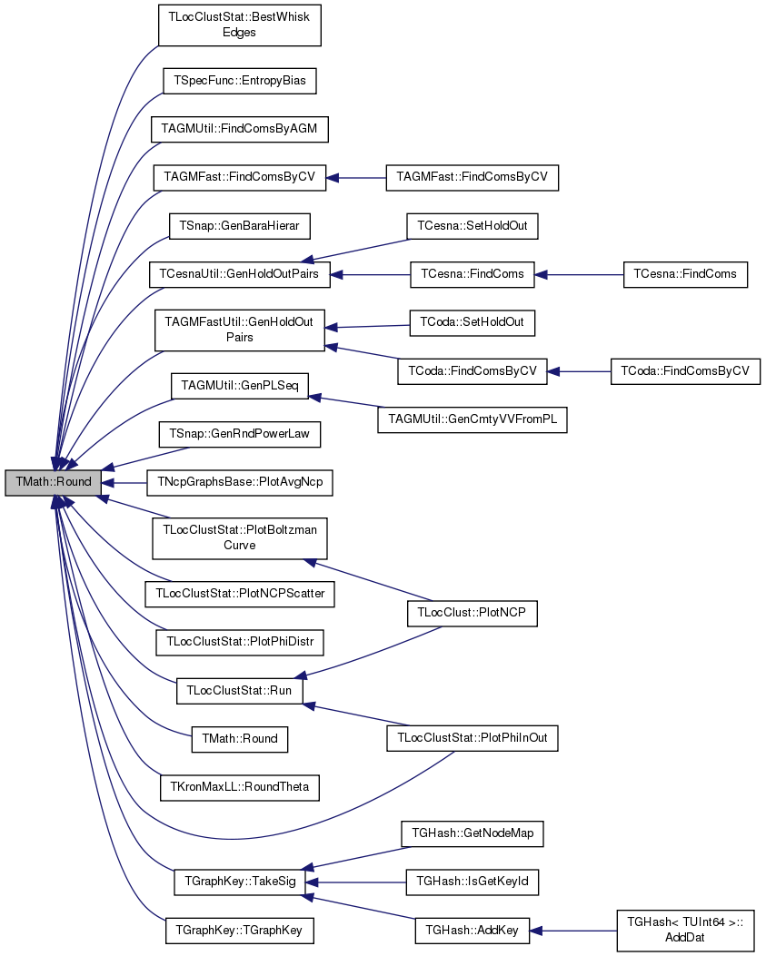 Referenced by TLocClustStat::BestWhiskEdges(), TSpecFunc::EntropyBias(), TAGMUtil::FindComsByAGM(), TAGMFast::FindComsByCV(), TSnap::GenBaraHierar(), TCesnaUtil::GenHoldOutPairs(), TAGMFastUtil::GenHoldOutPairs(), TAGMUtil::GenPLSeq(), TSnap::GenRndPowerLaw(), TNcpGraphsBase::PlotAvgNcp(), TLocClustStat::PlotBoltzmanCurve(), TLocClustStat::PlotNCPScatter(), TLocClustStat::PlotPhiDistr(), TLocClustStat::PlotPhiInOut(), Round(), TKronMaxLL::RoundTheta(), TLocClustStat::Run(), TGraphKey::TakeSig(), and TGraphKey::TGraphKey().