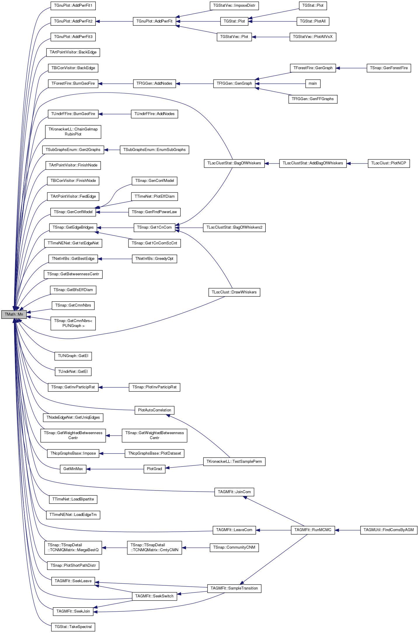 Referenced by TGnuPlot::AddPwrFit1(), TGnuPlot::AddPwrFit2(), TGnuPlot::AddPwrFit3(), TArtPointVisitor::BackEdge(), TBiConVisitor::BackEdge(), TLocClustStat::BagOfWhiskers(), TForestFire::BurnGeoFire(), TUndirFFire::BurnGeoFire(), TKroneckerLL::ChainGelmapRubinPlot(), TLocClust::DrawWhiskers(), TArtPointVisitor::FinishNode(), TBiConVisitor::FinishNode(), TArtPointVisitor::FwdEdge(), TSubGraphsEnum::Gen2Graphs(), TSnap::GenConfModel(), TTimeNENet::Get1stEdgeNet(), TNetInfBs::GetBestEdge(), TSnap::GetBetweennessCentr(), TSnap::GetBfsEffDiam(), TSnap::GetCmnNbrs(), TSnap::GetCmnNbrs< PUNGraph >(), TSnap::GetEdgeBridges(), TUNGraph::GetEI(), TUndirNet::GetEI(), TSnap::GetInvParticipRat(), GetMinMax(), TNodeEdgeNet< TNodeData, TEdgeData >::GetUniqEdges(), TSnap::GetWeightedBetweennessCentr(), TNcpGraphsBase::Impose(), TAGMFit::JoinCom(), TAGMFit::LeaveCom(), TTimeNet::LoadBipartite(), TTimeNENet::LoadEdgeTm(), TSnap::TSnapDetail::TCNMQMatrix::MergeBestQ(), PlotAutoCorrelation(), TSnap::PlotShortPathDistr(), TAGMFit::SeekJoin(), TAGMFit::SeekLeave(), TAGMFit::SeekSwitch(), and TGStat::TakeSpectral().