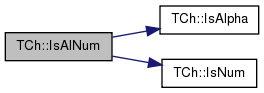 static bool TCh::IsAlNum ( const char &  Ch)